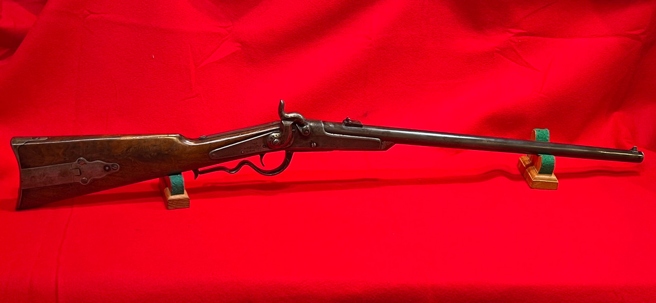 Loading... Please wait..."Original breech loading .50 caliber, percussion Gallagher carbine as issued to the Federal cavalry during the Civil War. Mahlon J. Gallagher, a South Carolina native, developed the weapon while he resided in Savannah, Georgia in July 1860. Subsequently the Philadelphia firm of Richardson and Overman obtained the rights to manufacture Gallager’s product via several contracts with the U.S. Ordnance Department. These carbines saw extensive service with the Union cavalry during the war but the weapon was not well liked by the troopers due to the difficulty in extracting the spent cartridge casings from the breech."-Wikipedia