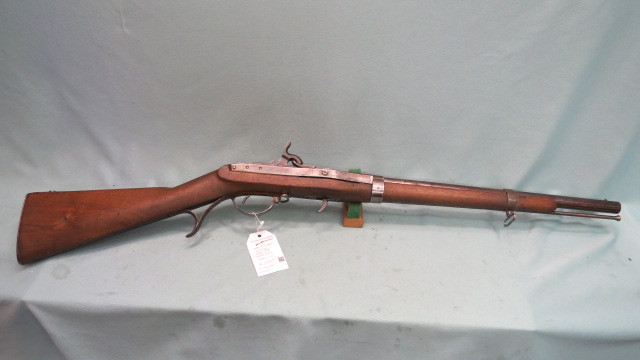 Loading... Please wait...J.H. Hall -Harpers Ferry- Dated 1839. .52 Cal. know as the M1819. Barrel condition is the typical dark bore with no pitting. Wood is in good condition. Barrel has light rust. Made at the U.S. Federal Harpers Ferry Arsenal, which was burned down during the early stages of the American Civil War. The JH Hall design was the first breach loading rifle. The Hall rifles were originally made in 1819 as a flintlock. This one has had the barrel cut down to 19 13/16 length, which was typical by the North and the South for use as a Cavalry Carbine. This is an Antique so no FFL required. SOLD May 2022