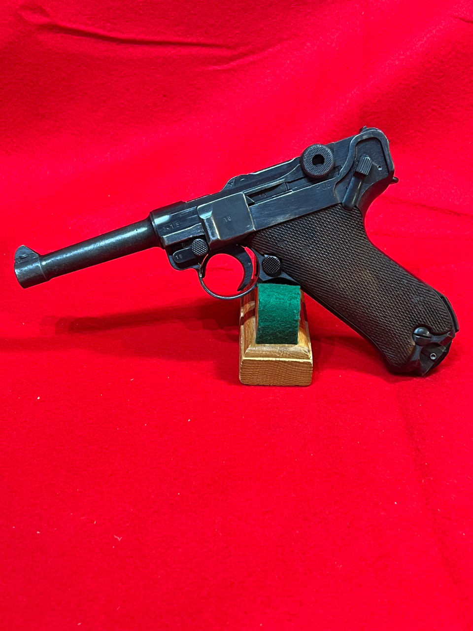 Loading... Please wait...SOLD.07/27/2023 The P08 Luger pistol was developed by Georg Luger in 1898 and started production in 1900. It was adopted by the armed forces Germanay (most notably), Switzerland, Portugal, the Netherlands, Brazil, Bolivia, and Bulgaria. A 45ACP version was almost adopted by the US military. It was produced from 1900 through the 1950s. It saw notable service during the Maji Maji rebellion, WWI, and WWII. This ws