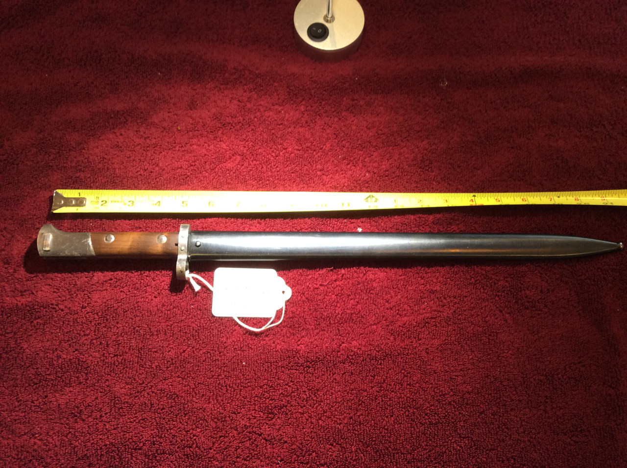 SOLD Beautiful Persian bayonet in very nice condition. Very shiny blade, nice wooden grips. Note the Persian (now Iran’s) Royal crown Acceptance mark and Farsi numbering etc. $74.90 SOLD (May 2020)