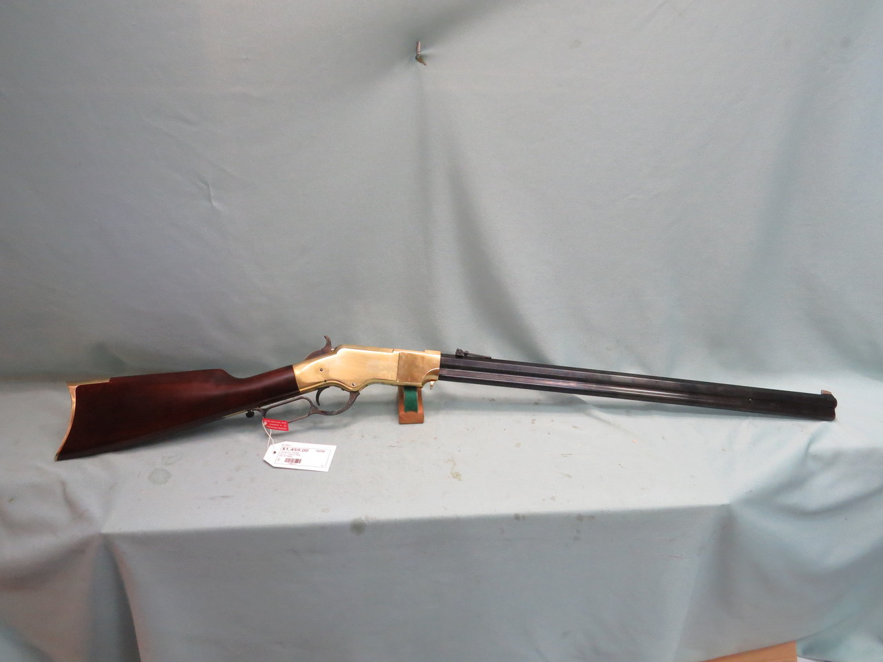Cimarron 1860 Henry Rifle. 45 LC. Barrel length 24". Capacity 12rd. The stock is made of walnut. The frame is made of brass. The lever is case hardened. Call with questions and to order.