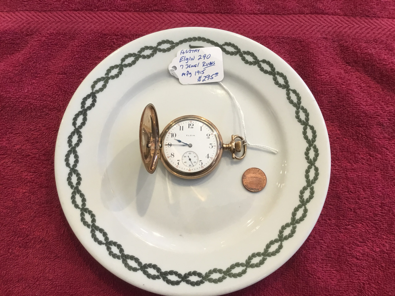 SOLD ELGIN MODEL 290, 7 Jewels, runs, manufactured 1915.