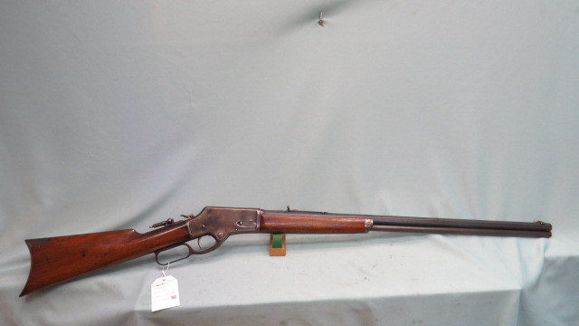 Loading... Please wait...Sold Marlin 1881, .38-55, bore is dark no pitting, folding rear tang sight, a couple scratches in the wood but overall very nice. The right side of the frame has good traces of original finish remaining and the left side has 80%. The blue on the octagon barrel is good turning a very nice plum. The markings are still clear and quite readable. The lever has strong case color on the left and is somewhat lighter on the right side. The action is very good. A great example of a classic Marlin. no FFL required.