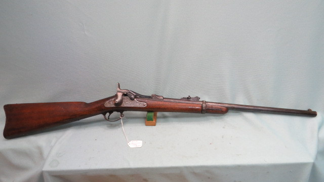 Springfield Trapdoor carbine, 45-70, clean bore, wood is in good condition, no cracks. This was a full length rifle that was cut down to a carbine. no FFL required