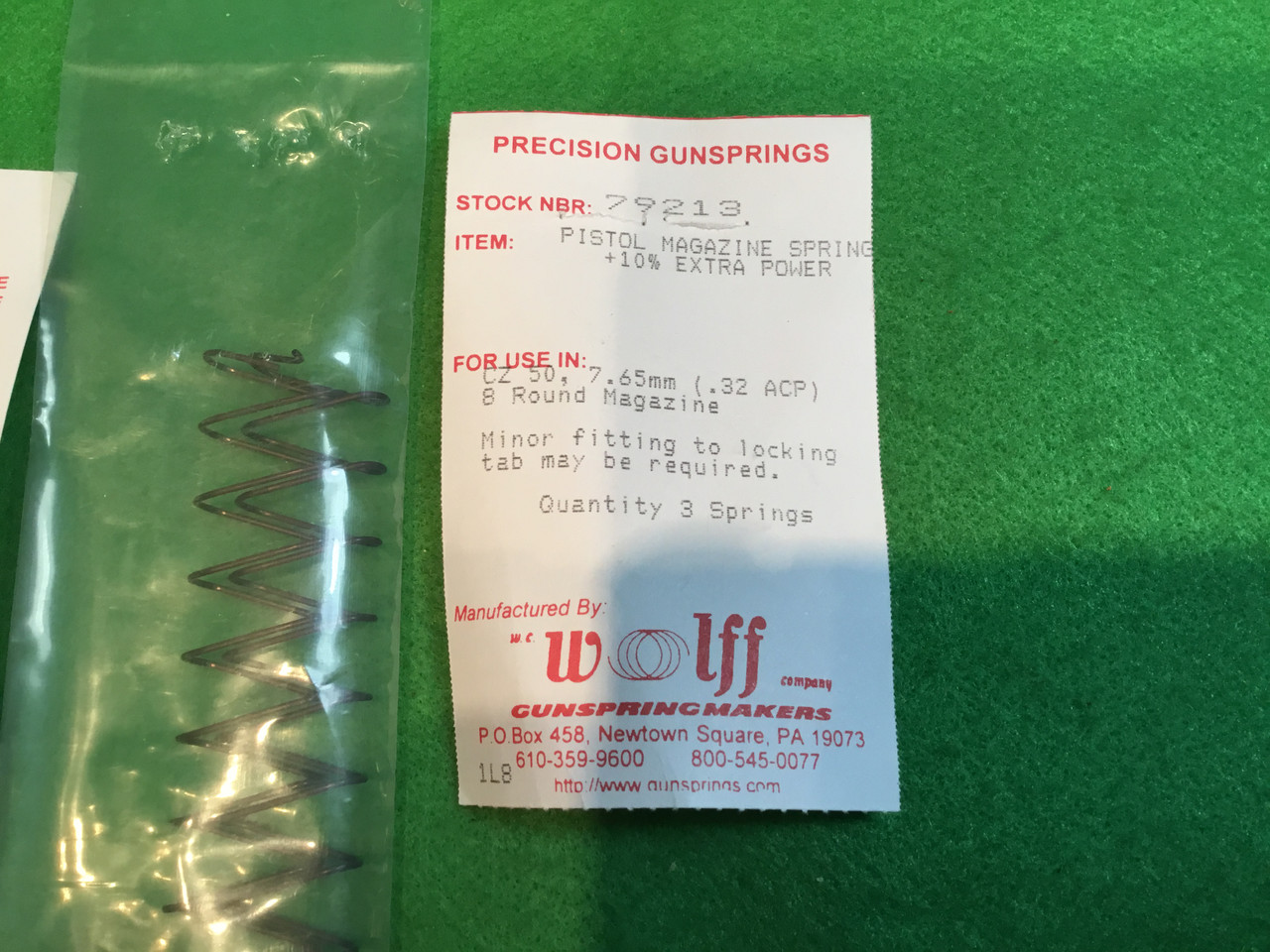 Wolff magazine spring for a Cz-50 .32 ACP two in bag. New never used. Sold Pistol.
